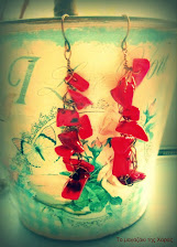 Χειροποίητα μακριά σκουλαρίκια από κόκκινα Κοράλλια δεμένα σε σύρμα χαλκού.